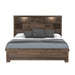 The Peyton collection re-envisions the bookcase headboard into a contemporary rustic aesthetic. Offering a mix of open and enclosed storage, the distinctive headboard offers a practical space for your favorite reads, decorative objects, and useful items. Add a little light with the simple touch of a button and charge your electronics easily with the built-in USB-A and USB-C port. The matching case pieces feature smooth drawer fronts in thick frames that stand atop wide angled feet. Pulling on the black metal bar hardware opens their drawers to reveal fully finished interiors in a classic linen pattern. Replicating the look of wood grain, the whole collection is wrapped in a multi-hued warm brown laminate.