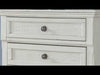 Elegant, timeless furnishings take your bedroom to the next level. Nothing does that better than this nightstand. The antiqued white finish with a wonderful grain texture radiates sophistication, while the dark bronze-tone hardware adds an ornate touch. A hidden pull-out tray behind the bottom drawer puts your small valuables out of sight. Felt finishing in the top drawer and a hidden pull-out tray rounds out the piece for the ultimate tasteful bedroom.