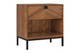 - Bring home the Astoria Nightstand to furnish your main or spare bedroom in modern, contemporary style. Showcase a bedside lamp and charge your phone up top and utilize one drawer and one shelf for storage below. Crafted from Acacia Solids and Veneers, this showstopping nightstand features a crisp chevron pattern in a Natural finish that beautifully showcases the unique characteristics of the wood grain. A Black Metal Base and Hardware complete this upscale look.