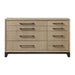 The Sutton Place bedroom collection embodies relaxed contemporary style with a focus on the natural beauty of oak. . Crafted with tight-grain, matched oak veneers over hardwood solids, each piece features a warm two-tone finish of caramel atop a cocoa base. Dark bronze bar pulls add subtle contrast, while select pieces showcase asymmetrical drawer configurations for unique visual appeal. The collection is anchored by a framed panel headboard paired with a panel or storage footboard, bringing a sophisticated yet comfortable look to your bedroom space.