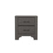 - The Thompson 2-drawer nightstand appeals with the classic beauty of straight lines and the natural charm of its rustic details. Replicating the look of wood grain, the dark gray laminate wraps around the entirety of each piece for a seamless and uniform finish. Two industrial-inspired reading lights are integrated into the planked headboard to illuminate your favorite book or create a cozy ambiance. Thoughtful details on the case pieces include decorative corbels arcing up at the base, dark-toned bar hardware, and fully finished drawer interiors with an attractive linen print.