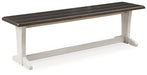 Make a farmhouse-inspired statement with this dining bench. It's beautifully crafted with a clean, classic two-tone finish and a thick planked effect. Making room for the whole family, this bench sports a casually comfortable vibe.