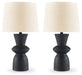 Turn on the brilliance and modern flair of this table lamp set. The angular silhouette and intriguing base in distressed black are the definition of bold style. These lamps pair wonderfully with contemporary furniture.