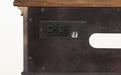 • Two integrated electrical outlets and USB ports keep cords hidden and out of the way and devices charged