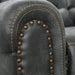 The Baldwin motion collection disproves the idea that good looks must be sacrificed for comfort. Rolled arms, nailhead trim, and contrast baseball stitching establish the traditional form. The weathered texture of faux leather is further enhanced by a distinguished slate gray color with blue undertones. Get a classic, traditional look with the Baldwin collection.