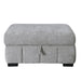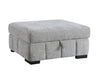 • The Ritchie storage ottoman invites you to sit but beckons you to stay. As you settle in, you'll notice all the contemporary details—fixed cushions that cradle you, a spacious chaise that begs for lazy afternoons, and a pop-up sleeper for those impromptu guest visits. The large accent chair, with a 360-degree swivel, amplifies the cozy seating options while draped in luxuriously soft white faux fur. The sectional is upholstered in a soft, light gray fabric, with vertical channel tufting on the sides, front, and ottoman, while the brown and creamy white patterned and faux fur throw pillows add depth and warmth. With hidden storage in the chaise and ottoman, everything you need is always within reach.