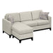 • The Joanna reversible chaise sectional combines contemporary prints with transitional elements for a comfortable yet sophisticated piece. This collection thoughtfully mixes soft smoky taupe chenille with accenting whorls of taupe and blue above a black espresso exposed solid wood base to keep your space feeling fresh. Keep the decorative side of the pillows facing out for an effortless accent, or reverse to display the matching taupe fabric and supplement with your own accents. Supportive pocketed coil seat cushions provide a comfortable rest on the loveseat or chaise. Enjoy the extra versatility of moving the chaise to the left or right side and add an easy, updated look with this chaise sectional..