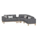 If you thought amenities were only for motion furniture, think again. The completely stylish Maeve collection offers a console with hidden storage, stainless steel cupholders, a wireless charging station, and a wireless speaker with USB chargers. An extra-wide, barrel-shaped accent chair is accompanied by a matching barrel-shaped storage ottoman. The spacious wedge of the sectional makes for extra cuddling space, while the gorgeous dark gray fabric sits atop a warm-toned exposed wood base. Get the whole package with the Maeve collection.