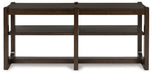 If casual contemporary style is your thing, then you'll love this sofa table. A wood-tone finish with a rich, dark grain contrast lends a soothing sensibility, while two independent adjustable shelves add function to great form. Sleek and stylish, this versatile piece is also ideal as a TV stand or console bookcase. What a fresh take on cool for the modern home.