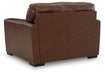 Effortlessly stylish, indulgently comfortable. This oversized chair encourages everyday relaxation with invitingly plush, extra-spacious cushions. It embodies affordable luxury, pairing the sleek appeal of top grain leather in the seating area with expertly matched faux leather on the sides and back. Suiting spaces from casual to contemporary, the chair's universal appeal makes staging your space nearly effortless.
