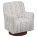 With shapely, transitional curves in a compact form, the Clara swivel armchair delivers versatile design for your space. Sinuous springs and individually pocketed coil seat cushions provide lasting comfort. The dark, warm walnut-colored solid wood base hides a 360-degree swivel. Whatever color you choose, the Clara accent chair promises to be dazzling.