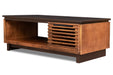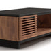 Bring home the Graceland 47 inch coffee table from Bridgevine Home for a sophisticated and upscale addition to your home. This distinctive cocktail table is Scandinavian-inspired and artfully crafted from Poplar solids and Okume veneers with a two-tone Black and Bourbon finish. Featuring two doors with horizontal slat details, concealed storage and one lower shelf, this showstopping piece boasts clean, glamorous, mid-century style and unparalelled craftsmanship. Fully assembled upon arrival, all furniture from Bridgevine Home is ready to unbox and enjoy.