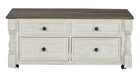 - Two-tone finish; distressed weathered gray top with distressed vintage white base