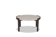 Elevate the look of your living space with the Palette short bunching table, an alluring blend of European design and nature-inspired beauty. A light travertine stone top rests upon a contrasting, curved wood base, evoking the illusion of a floating surface. Part of a table collection with three distinct heights and sizes, the Palette short bunching table can be paired with other versions to create a layered, visually captivating look that expands surface space without crowding a room.