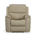 Treat yourself to a comfortable yet refined sitting experience with the Henry leather power recliner with power headrest and lumbar. This generously scaled frame is upholstered in a durable beige leather, and features a contoured seat and padded arms with a unique sculptural shape and welt trim. Power recline, headrest and lumbar control on the right side allows for customized comfort, and an included USB port provides convenient device charging. The Zero Gravity recline technology gives the feeling of weightlessness while Flexsteel's patented Blue Steel Spring™ provides lasting seat support.