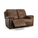 Introduce a sophisticated touch to your living room with the Fenwick power reclining loveseat with power headrests. This elegant piece showcases unique, banded cross-stitching details that add a refined texture and visual appeal to its premium, cognac brown leather upholstery. The plush, divided back cushions and fully padded footrests offer supreme comfort, perfect for relaxing after a long day. With independently adjustable recline and headrest support, you can effortlessly find your ideal position at the touch of a button. Plus, the center console provides a place for drinks and storing remotes, magazines, and more. Flexsteel’s patented Blue Steel Spring™ technology offers unparalleled durability and support, making this loveseat a lasting addition to your home.