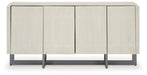 Keep things contemporary cool with the Ornawel accent cabinet. The step pattern on the door fronts lends an appealing geometric touch, with a lightly distressed white finish enriching the design. Touch latch doors open to reveal two shelves for all your storage needs. What a high-style statement.