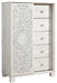 A one-of-a-kind girl deserves a bedroom retreat that celebrates her personal flair—and this boho-chic chest of drawers is so befitting. Wowing with an artful, carved-effect sliding door and richly distressed whitewash finish, this five-drawer chest with additional shelved storage is packed with possibilities.