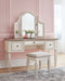 Realyn - Vanity/Mirror/Stool (Set of 3) - White / Brown / Beige
